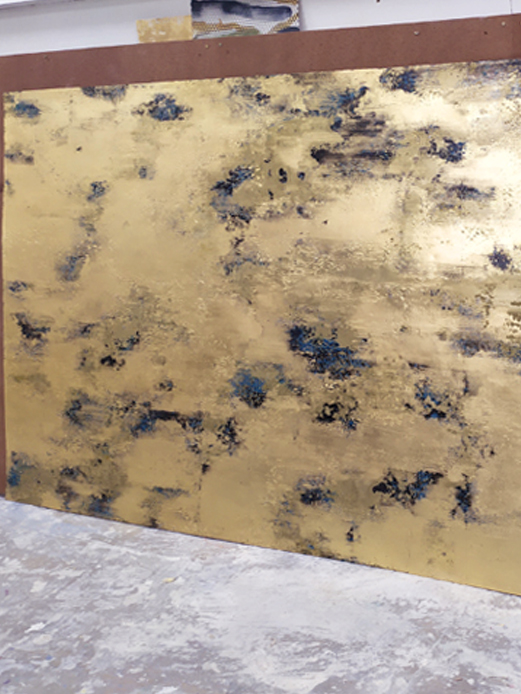 Décor en dorure sur scagiola bleu cæruleum et noir