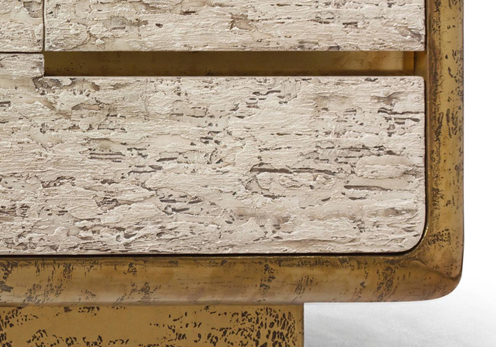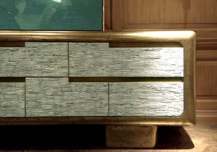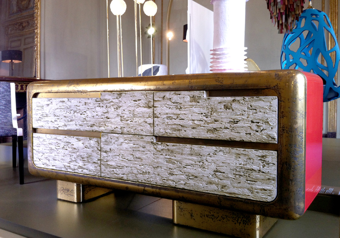de l’habillage de la façade d’un meuble présenté à l’Hôtel de la Marine à Paris pour l’exposition AD Collections 2016.