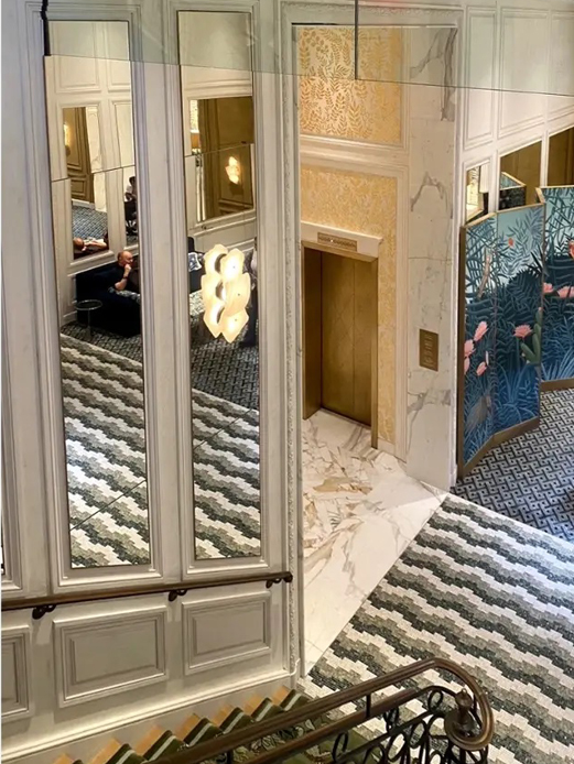 Encadrement de portes ornés de bas reliefs dorés à la feuille.