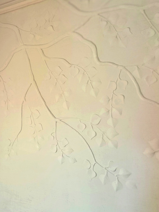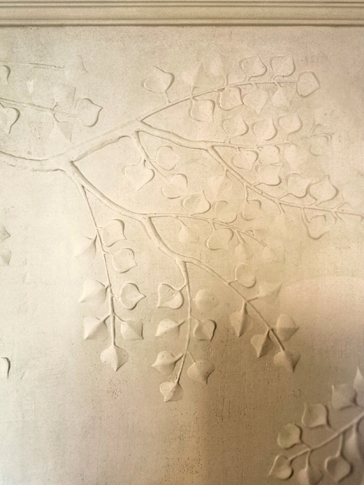 Des branches de peuplier en bas-relief sur un fond un peu vagué comme un jardin japonais ou la Seine qui passe juste à côté.