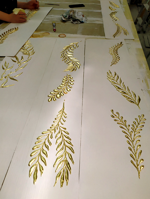 A curved bas-relief decor featuring 80 gilded leafy plants.